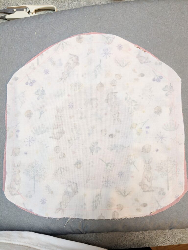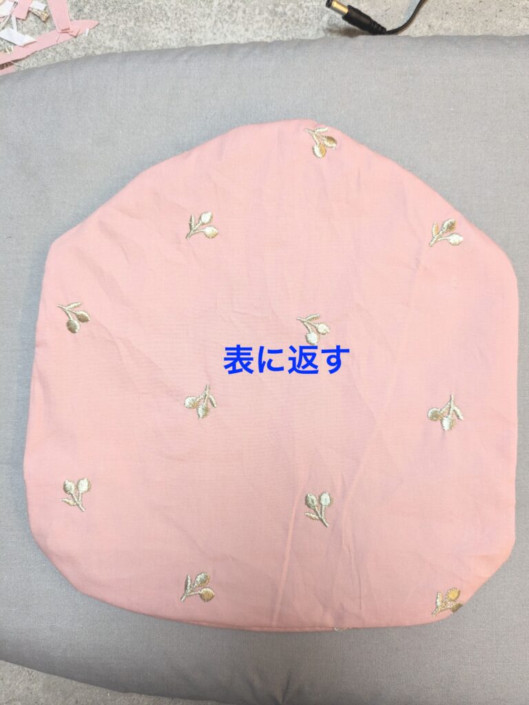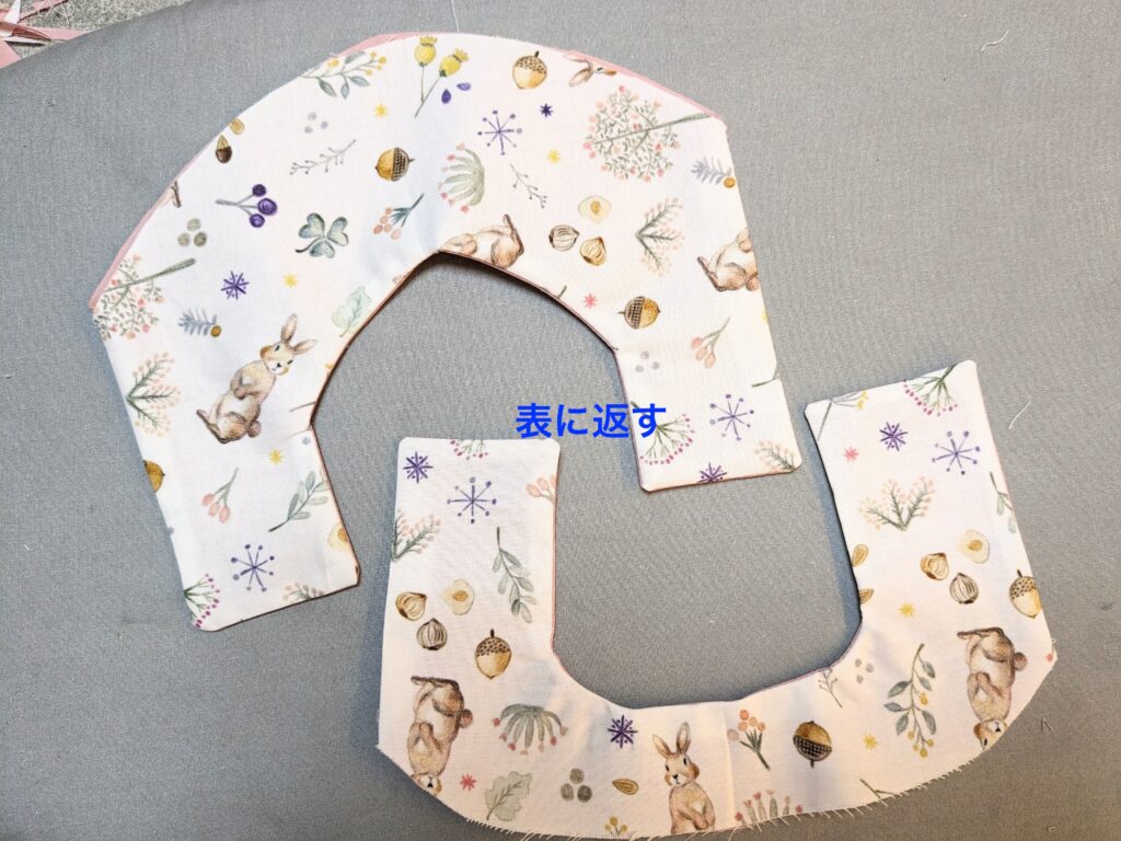 リバーシブルなので表裏はありませんが、以下便宜上、うさぎ柄のほうを表地、チェリー柄のほうを裏地と呼ぶことにします。